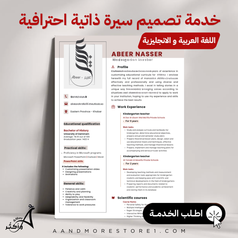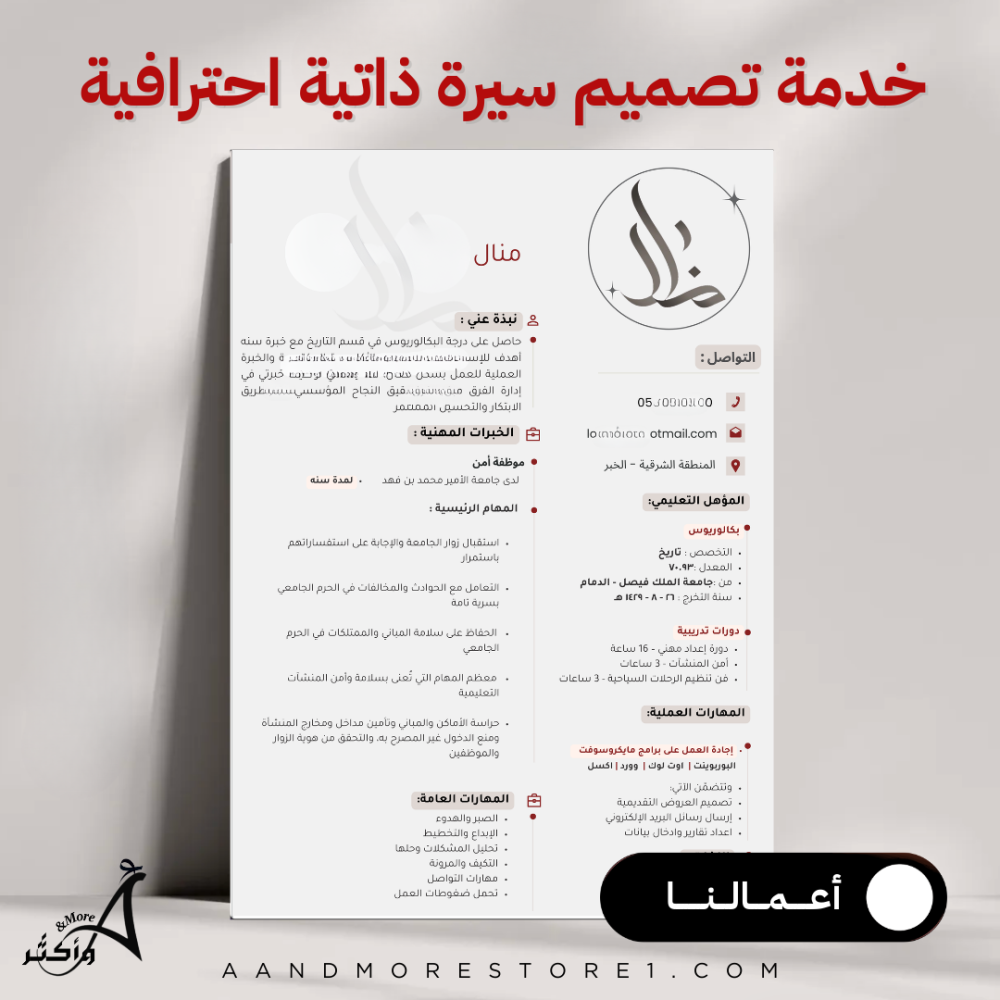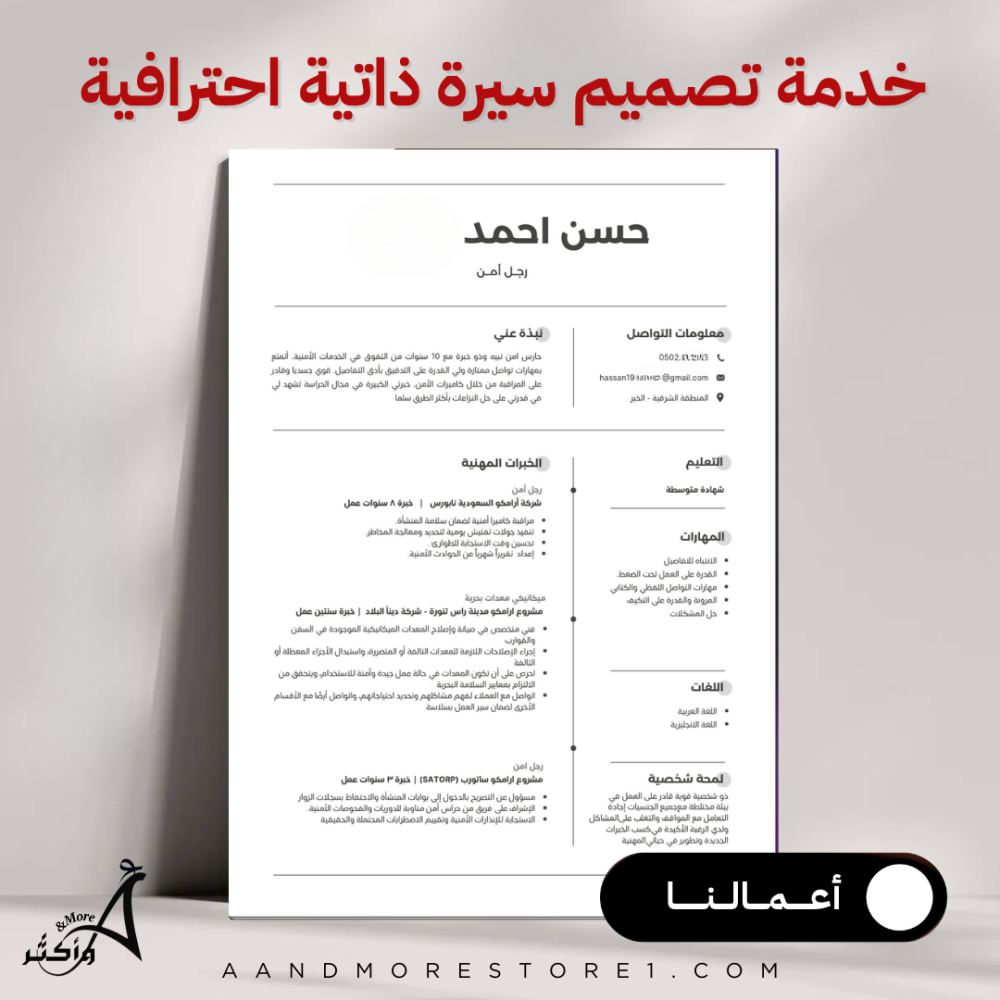 - نقدم لك النسخة النهائية من السيرة الذاتية بصيغة PDF مقاس A4 وجاهزة للطباعة 🖨